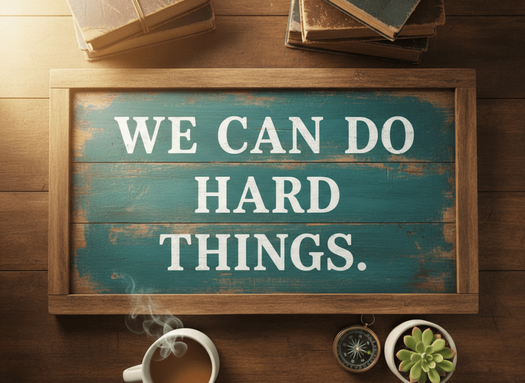 Honestly, even if it’s as simple as “we can do hard things”, I will often have them repeat phrases after me. Like directions, short phrases, but in this case, I often come back to this phrase right before something I know will be incredibly difficult for them.